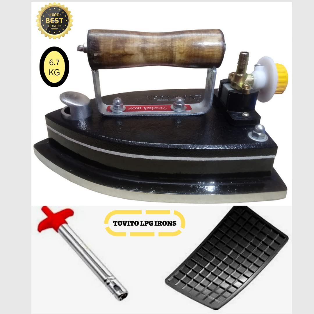 Tovito 6.5 kg Newtech LPG Gas Iron press [ 6.5 kg India’s No.1 New Model ] Best for Dhobi/Laundary [Heavy duty + Longlife] with Wooden Handle (lakdi ka handle) LP Gas Iron Press